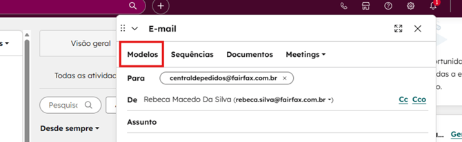 - Entre no hub, e abra o negócio no qual quer responder ou enviar o e-mail.
