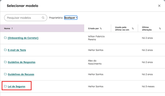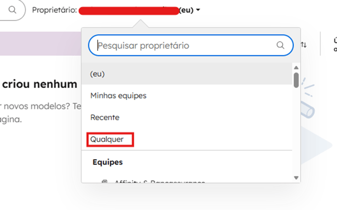 - Ele abrirá essa aba onde é necessário clicar em proprietário que irá estar como “eu”.