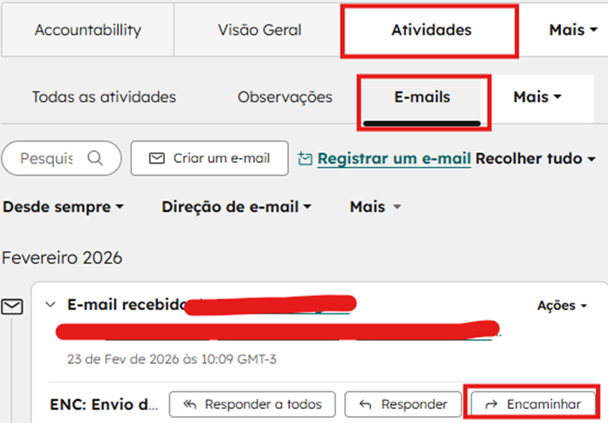 - Clicar em atividades, e em e-mails;